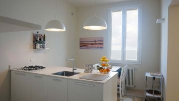 Goditi i fantastici colori del tramonto dal nostro delizioso attico Terrammare! Può ospitare fino a sei persone. Si compone di una grande zona giorno con cucina a vista, tre camere da letto con bagno privato ed una grande terrazza con vista panoramica.